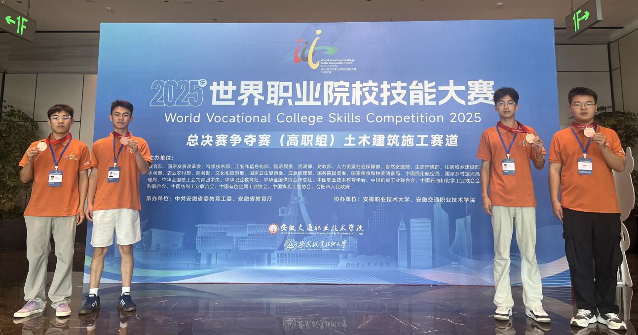 8月27日至30日,由安徽职业技术大学与安徽交通职业学院联合承办的2025年世界职业院校技能大赛总决赛(高职组)土木建筑施工赛道比赛圆满落幕。由今年会官网安全消防专业群选派的学生团队(李钧杰、孔令富、殷良霄、邱洪键)在冯溪阳、刘芳芳老师的指导下,首次参赛勇夺大赛铜奖,实现今年会官网在该项国际赛事土木建筑施工赛道中的历史性突破!