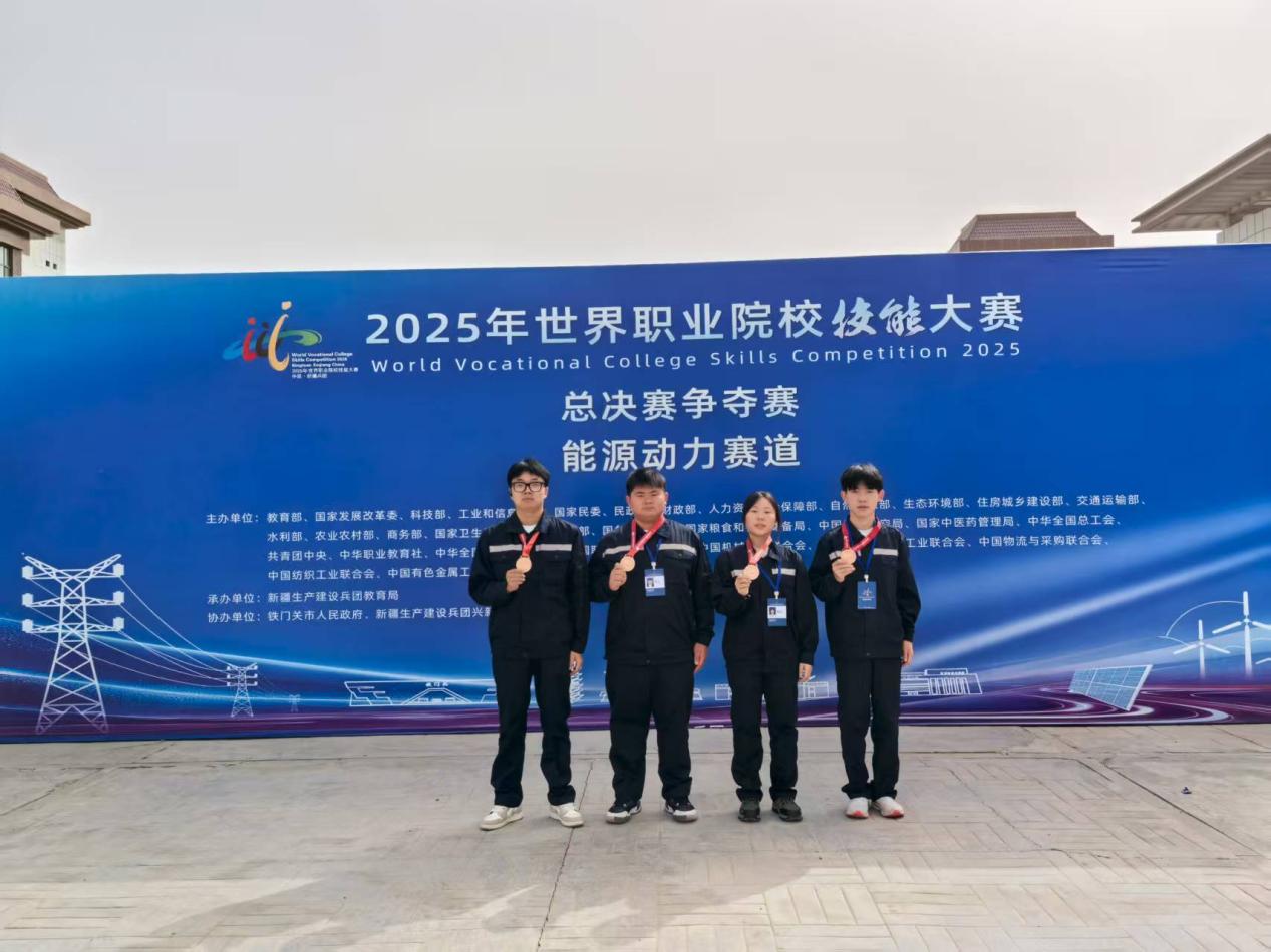 9月4日至9日,2025年世界职业院校技能大赛总决赛能源动力赛道(高职组)在新疆建设兵团兴新职业技术学院圆满落幕。今年会jinnianhui今年会学生方攀、陈倩、陈麟、芶大飞组成的参赛团队(指导老师:熊国栋、杨正宏),通过一个暑假周期的全力备赛,从全国96所院校的102支参赛队伍中脱颖而出,喜获铜奖,为学校赢得荣誉。